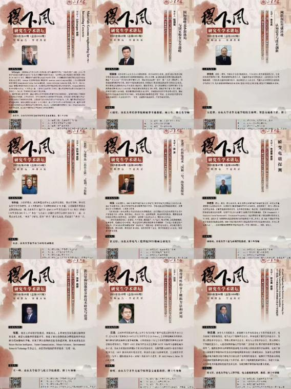 本年度,学术品牌同步开展“山大研究生”微信公众号线上预告,开辟“学术清单”“科研快讯”融媒栏目,点击量近4万人次,为培养单位对接申办“稷下风”“海右”讲座提供选题参考和引导,为研究生营造浸润式学术环境。“科研快讯”系列全年发布8期成果资讯,涵盖哲学社会科学、工学、医学、理学等方向。“学术清单”系列全年发布8期选题资讯,聚焦人工智能、量子技术等新兴领域。