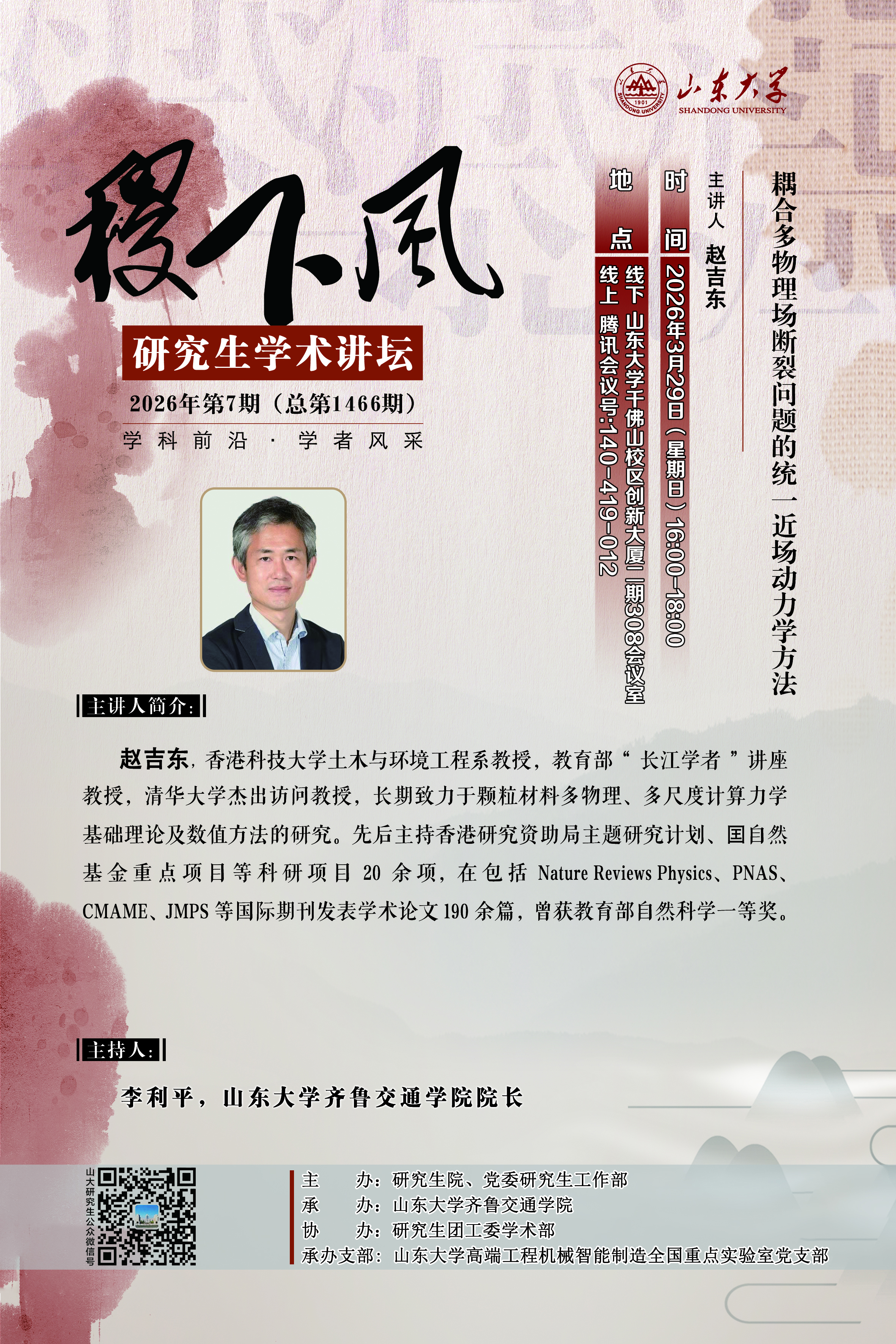 “稷下风”第1466期:耦合多物理场断裂问题的统一近场动力学方法