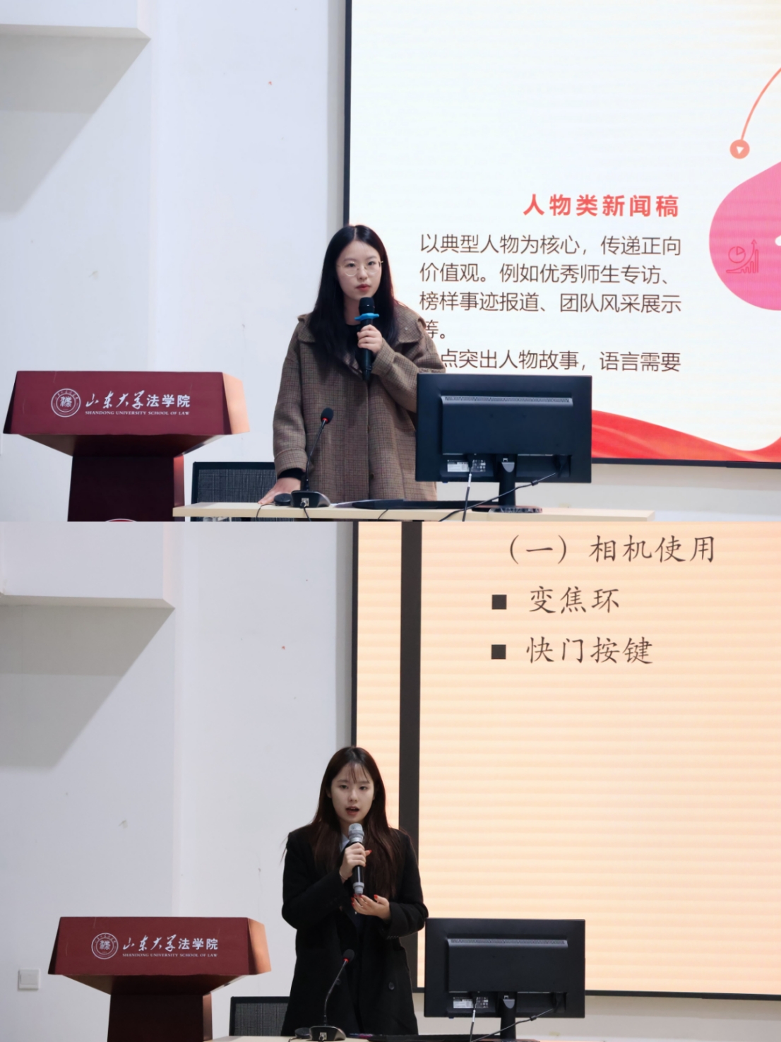 读书班第二阶段着力内部队伍建设,组织法学院研究生会全体成员开展宣传工作专题培训。葛佳怡、周佳妮分别就校园新闻写作规范与新闻活动摄影展开实务培训,助力读书班学员锤炼宣传过硬本领。