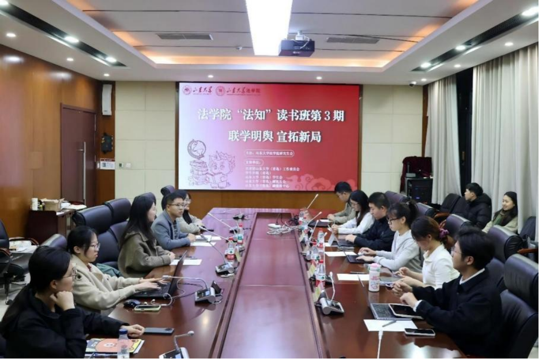11月13日,法学院“法知”读书班(第3期)在青岛校区华岗苑举办。本期读书班以“联学明舆 宣拓新局”为主题,由法学院研究生会主办,共青团山东大学(青岛)工作委员会、学生在线(青岛)、山东大学(青岛)学生会、山东大学(青岛)研究生会、山东大学(青岛)融媒体中心共同协办。读书班由法学院研究生会负责人张鹏飞主持,吸引校区100余名学员参与。