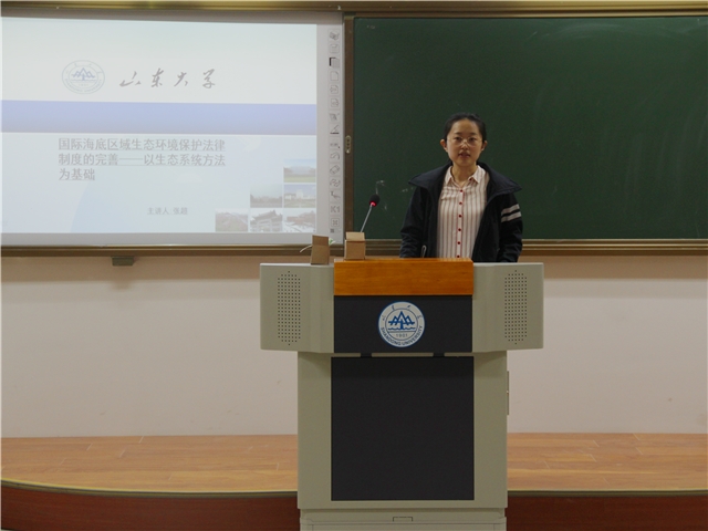 张超同学此次报告的主题为“国际海底区域生态环境保护法律制度的完善——以生态系统方法为基础”,报告主要分为三个部分的内容。第一部分,张超同学讲述了国际海底区域的基本知识,具体阐述了海底区域法律制度的历史沿革,区域矿产资源的基本情况,三种不同深海矿产资源开发对生态环境的影响等。第二部分,张超同学基于生态系统方法的深海生态环境保护法律制度,具体论述了生态系统方法的客观性、主观性和手段的适当性。第三部分,张超同学讲述了基于生态系统方法的深海生态环境保护法律制度的具体内容,分为环境影响评估和监测制度、适应性管理制度和方法、区域环境管理制度、经济激励机制、组织机构方面的制度等五个方面,并讲述了区域现有的生态环境保护法律制度,着重介绍了国际海底管理局“开采规章草案”的改进和完善。