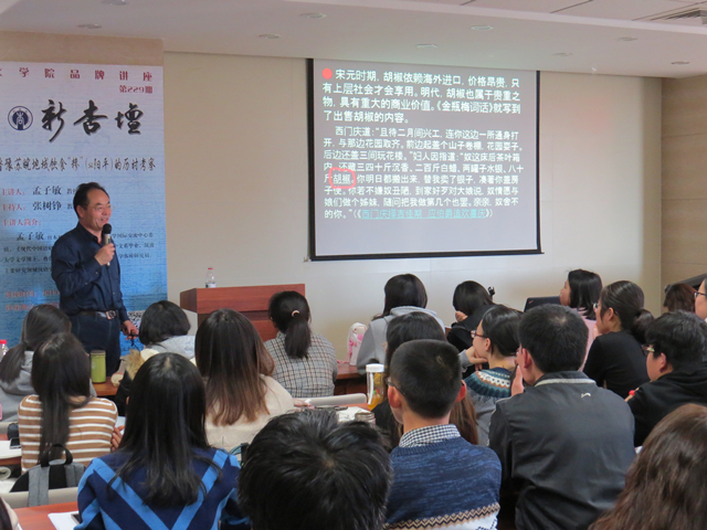 3月12日,日本松山大学教授孟子敏做客文学院“新杏坛”,在知新楼A606作了题为“鲁豫苏皖地域饮食“糁”(sá)的历时考察”的讲座。讲座由文学院张树铮教授主持。