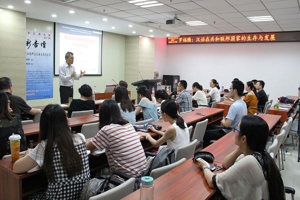 7月2日晚19点,新加坡社会科学大学副教授、中文部主任罗福腾先生应邀做客文学院新杏坛,在知新楼A座606为学院师生带来了一场题为“华语在共和国联邦国家的生存和发展”的精彩报告。讲座由文学院教授张树铮主持,众多研究生参与聆听了此次讲座。