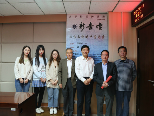 10月13日晚18时30分,四川大学杰出教授、博士生导师曹顺庆做客我院“新杏坛”,在知新楼A620室作了题为“西方文论中的中国元素”的讲座。讲座由我院比较文学与世界文学专业刘林教授主持,院长杜泽逊教授出席了本场讲座。