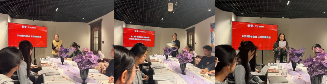 研究生会及各职能部门在汇报中展现了服务师生的宗旨。团委委员丁清雯对研会整体工作及宣传部成果进行了总结。文体部部长孔晶、秘书处部长李鑫盈、学术部副部长陈佳、语翼编辑部副部长温佳雯及实践部副部长张瑞鑫分别就部门亮点工作进行了交流。从繁荣校园文化到赋能学术创新,从细致的后勤保障到多维度的社会实践,各部门表示将进一步优化内部体系,提升组织联动效率。