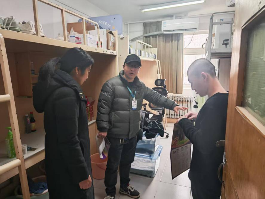 走访期间,马蕾一行与同学们进行了亲切交流,细致询问大家近期的学习、生活情况及宿舍安全状况,传达防火、防盗、防骗、用电安全及应急处理等关键信息。老师们着重强调了期末及节假日期间宿舍安全的重要性,叮嘱同学们务必严格遵守学校宿舍管理规定,增强安全防范意识,养成人走电断、定期排查隐患的良好习惯,共同维护安全稳定的住宿环境。