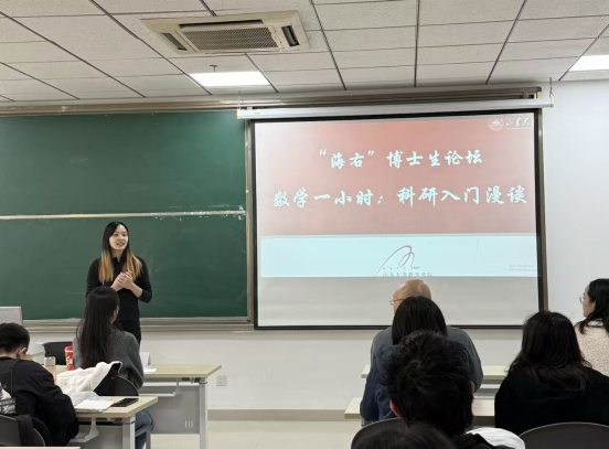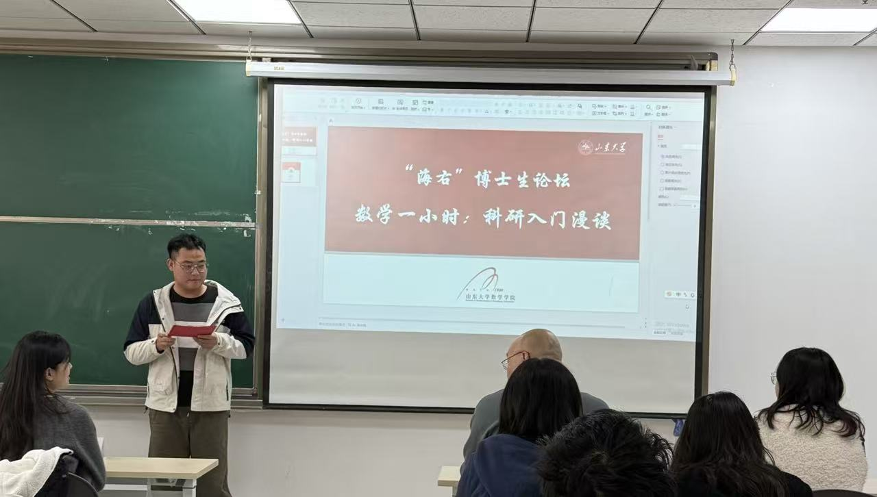 2025年12月11日下午,由山东大学研究生院、党委研究生工作部主办的研究生特色学术活动品牌,数学学院承办的第24期(总866期)“海右”博士生学术论坛于中心校区知新楼B1032教室如期举办,此次论坛邀请了孟晓庆和罗姝两位博士生作报告,金融研究院博士生导师王汉超教授作为点评嘉宾出席了本次论坛。