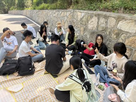 正午时分,山间野餐与图书漂流温馨开启。同学们以小组为单位围坐野餐垫上,分享自带的美食、水果与零食,在烟火气中畅谈科研日常、生活趣事,彼此关照、其乐融融。