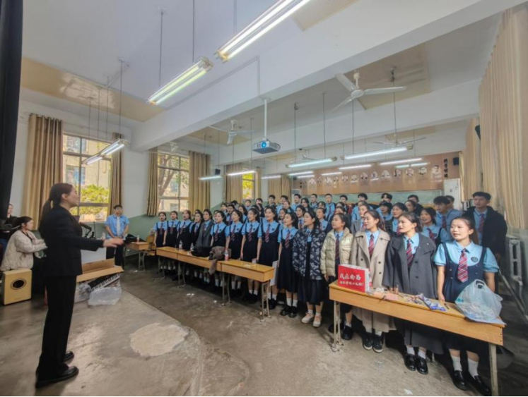 此次比赛,背后是学院师生同心协力的汗水凝结。9月底比赛通知下达后,学院迅速启动筹备工,不仅高效完成了师生招募,组建参赛队伍的工作,还制定了科学详细的排练计划,确保备赛有序推进。比赛训练从发声技巧的逐句校准、歌曲情感的反复揣摩,到舞台队形的优化调整、服装道具的统一筹备,师生们对每个细节都精益求精,让“导学同行” 的凝聚力在实践中落地。