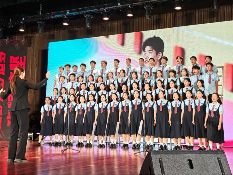 比赛现场,音乐厅内座无虚席。随着前奏响起,化学与化工学院代表队成员身着统一服装,以整齐和声开篇,演唱曲目《少年》。表演中,不同声部配合紧密,导师群体的沉稳声线与学生群体的清亮嗓音相互交织,音色层次分明。充分展现出长期相处中形成的深厚默契,也将师生间的团队协作精神具象化地呈现在舞台上。音符落定,现场评委与观众报以掌声。