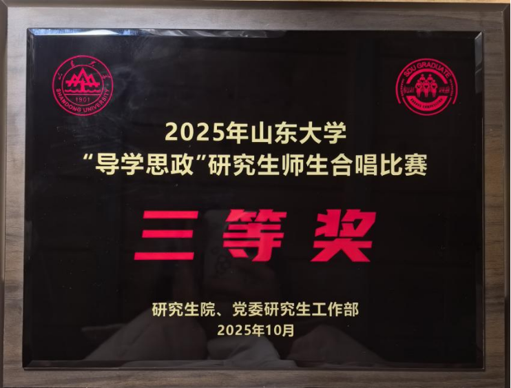 为深化“导学思政”协同育人内涵,搭建师生情感交流桥梁,凝聚各学院奋进力量,2025年10月26日下午,山东大学2025年“导学思政”研究生师生合唱比赛在中心校区音乐厅正式举行。化学与化工学院积极响应赛事号召,组建由学院党委副书记袁芳老师带队、5名教师代表与55名研究生共同组成的师生代表队参赛。代表队演唱的《少年》,获得比赛三等奖。