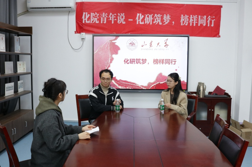 2025年11月8日,“化院青年说”国家奖学金经验分享座谈会于我院新楼会议室顺利举行。本次活动邀请本年度国家奖学金获得者冯大伟与任俊杰两位同学担任分享嘉宾,在轻松自然的对话氛围中,与同学们分享了他们的科研经验与成长心得。