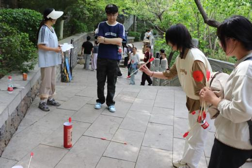 心有万象,美育随行。工作人员在登山途中设置了特色打卡点,学子们结伴而行,在盖章打卡中定格春日足迹,在登高望远中领略佛慧山的苍劲风光与济南地域文化底蕴,疲惫与迷茫在清风与绿意中悄然消散,实现了身心的全面舒展与精神的深度放松。工作人员全程随行护航,密切关注学子们的身体状态,及时提供饮用水、急救物资等帮助,同步用镜头记录下活动中的精彩瞬间,保障登山活动安全有序、顺利结束。经过一番奋力角逐,首支参赛队伍以1小时29分钟的优异成绩全员冲线,其余队伍也均在规定时间内顺利抵达终点,圆满完成全部赛事流程。