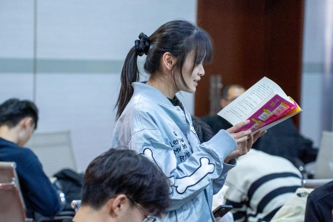 在分享交流环节,各小组代表依次上台,分享本组的阅读成果与个人感悟。代表们结合书籍内容与自身科研、生活经历,畅所欲言,引发了现场同学们的强烈共鸣。台下同学积极回应、热烈讨论,围绕书籍主题交流观点、碰撞思想,充分展现了研究生群体的思辨能力与学习热情。