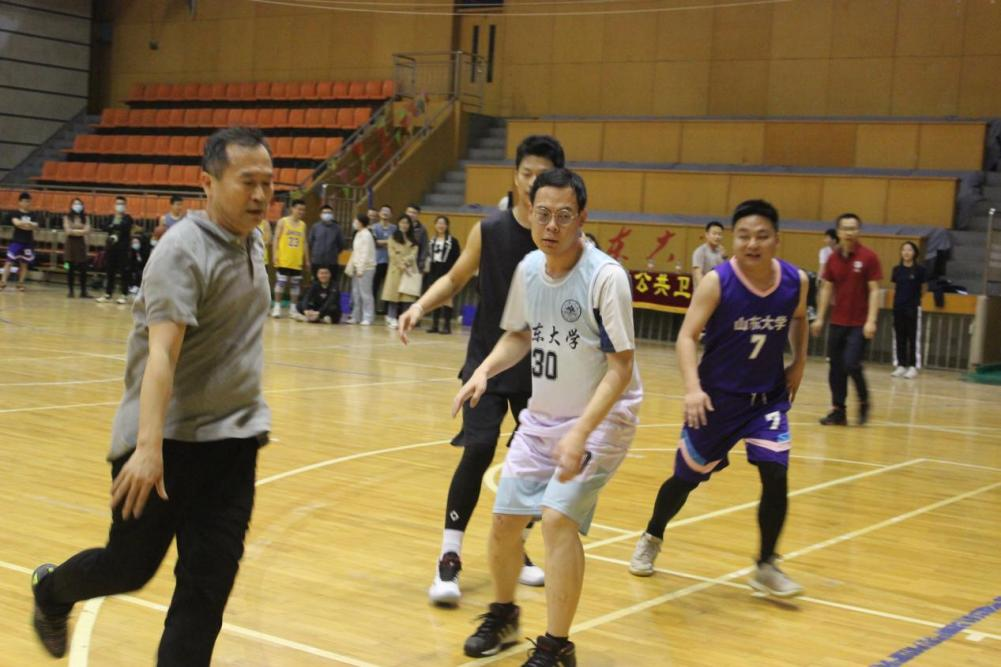 以篮球之名,共建运动友谊、师生情谊;以篮球之名,共筑体育梦想、强国梦想。为落实五育并举,增强师生身体素质,丰富学生校园文化生活,培养融洽的师生关系,4月22日晚7点,公共卫生学院于趵突泉校区篮球馆顺利举办“导学思政下午茶”之“‘公’克时艰、‘卫’民守学”师生篮球赛,公共卫生学院副院长马伟教授、席波教授同留校导师团队参加比赛。公共卫生学院党委书记姜文丽,党委副书记李松涛、于超,研究生辅导员信鸽、孙潇出席并观看比赛。