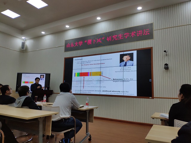 2019年4月30日上午10点30分,由山东大学研究生院、党委研究生工作部主办,公共卫生学院承办的第43期(总第820期)“稷下风”研究生学术讲坛于趵突泉校区综合楼阳光大厅举行。刘足云老师做客此次论坛,讲述的主题为“Studying Human Aging Hierarchically from Functional, Phenotypic to Molecular Levels”。本次讲坛由公共卫生学院流行病学系主任、博士生导师马伟教授主持。