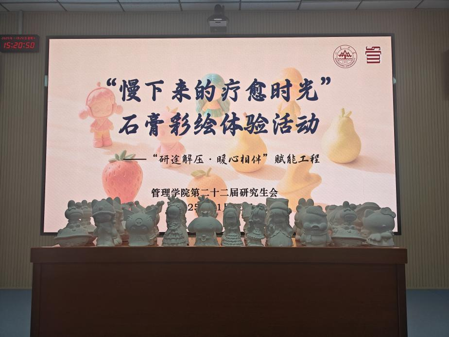研究生心理健康教育是学院育人工作的重要内容,也是落实“五育”并举的具体举措。为减轻研究生学习科研压力,缓解焦虑情绪,11月20日,管理学院于中心校区组织开展“慢下来的疗愈时光”——研究生石膏彩绘体验活动。