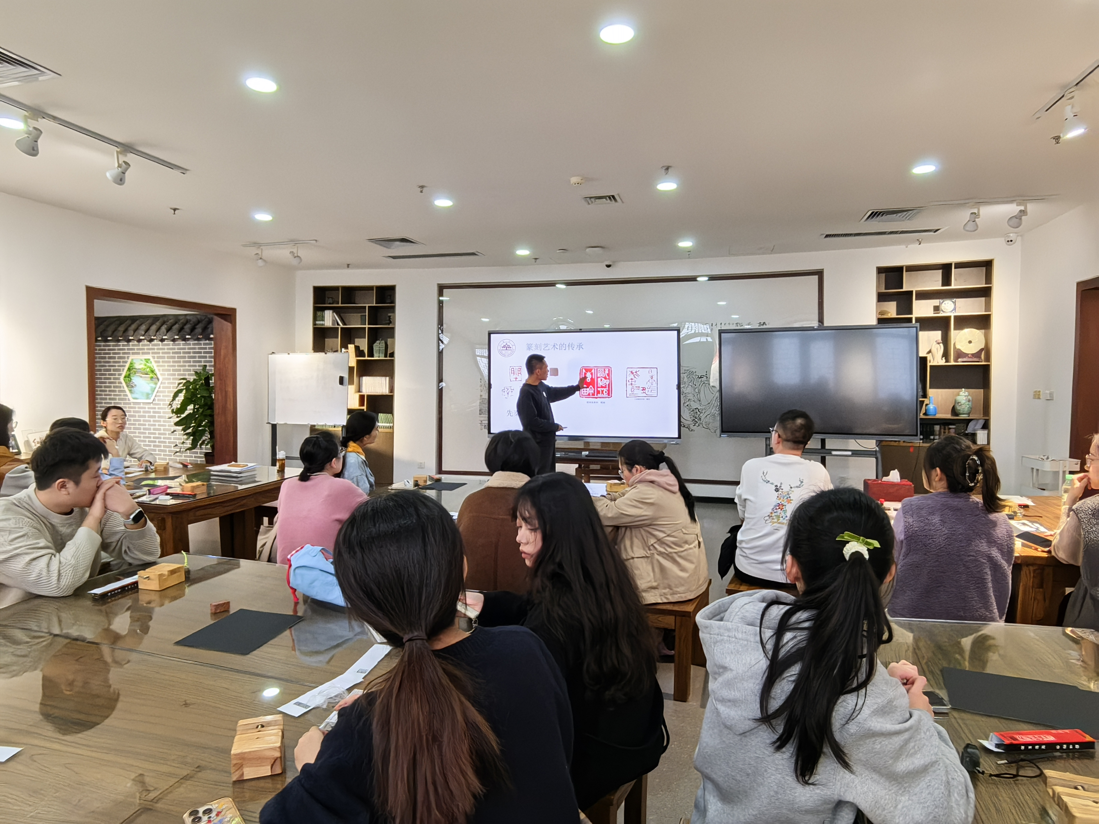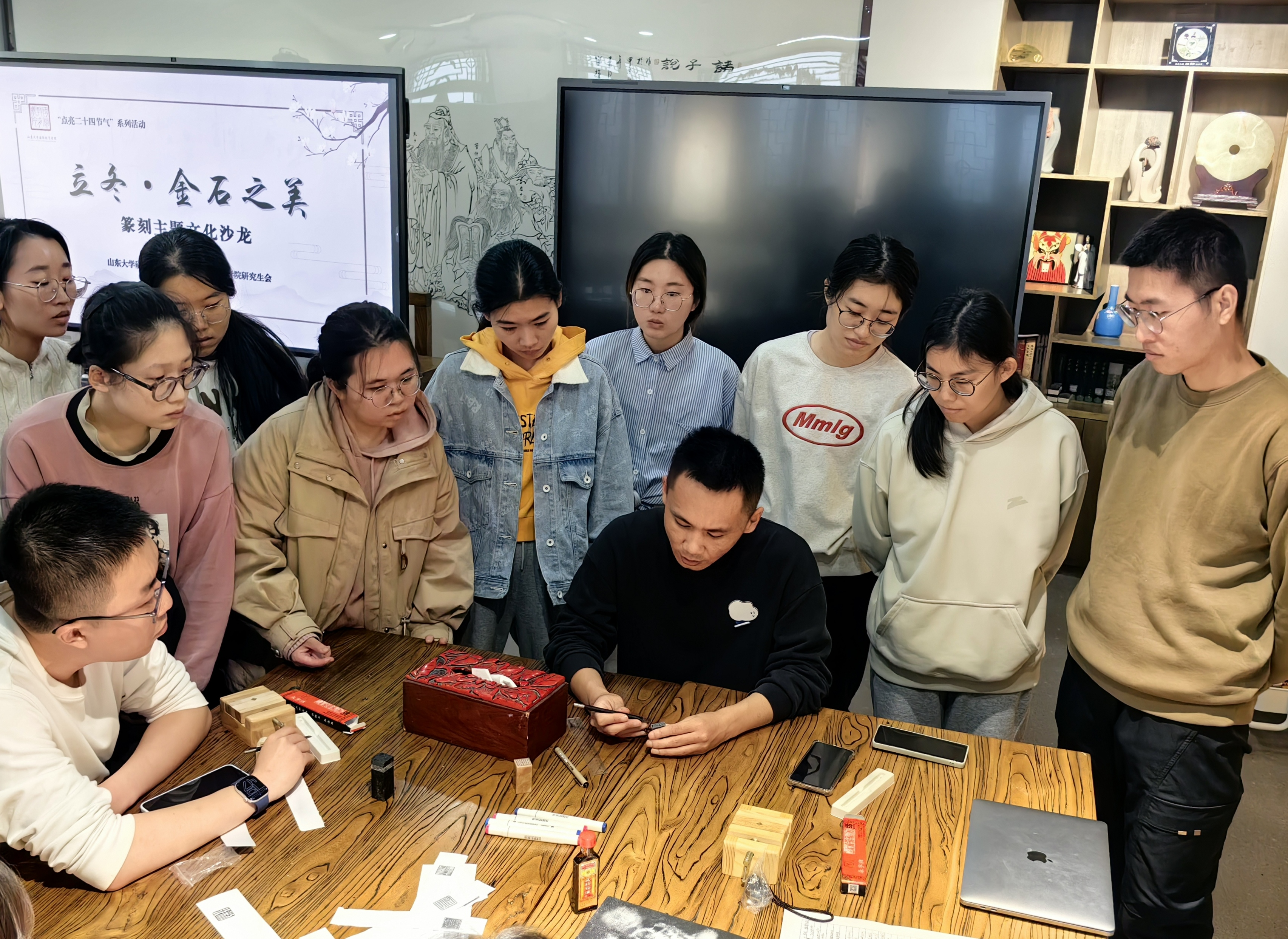 11月7日,国际教育学院研究生会联合山东大学研究生会于中华传统文化研究与体验基地诸子学堂举办“立冬·金石之美——篆刻主题文化沙龙”活动。活动特邀山东大学文艺学博士研究生、中国书法家协会会员闫井贺担任主讲嘉宾,来自土建与水利学院、公共卫生学院等11个学院的25名研究生参与活动。