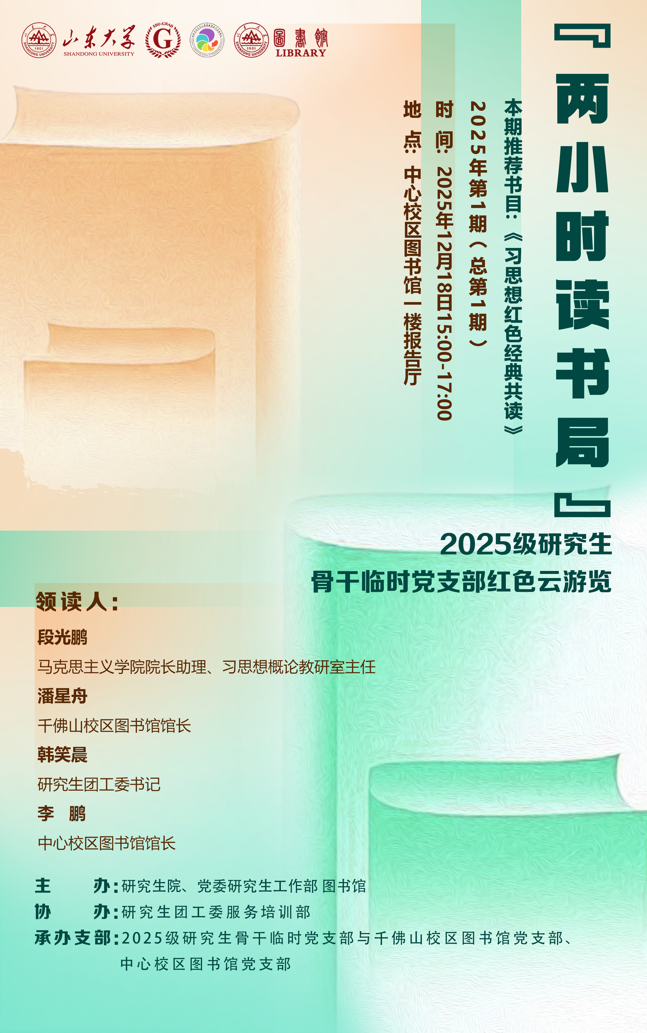 “两小时读书局”2025年第1期(总第1期):研究生骨干临时党支部专场