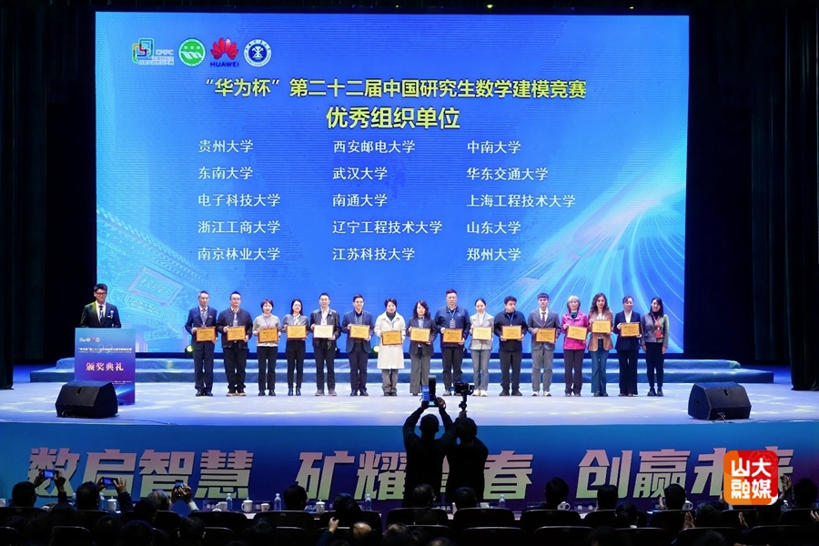 12月7日,第二十二届中国研究生数学建模竞赛颁奖典礼在中国矿业大学举行。山东大学在本届比赛中共获国家奖81项,其中一等奖2项、二等奖36项、三等奖43项,获奖比例和团队数均位居国内高校前列。此外,山东大学再次荣获优秀组织单位。