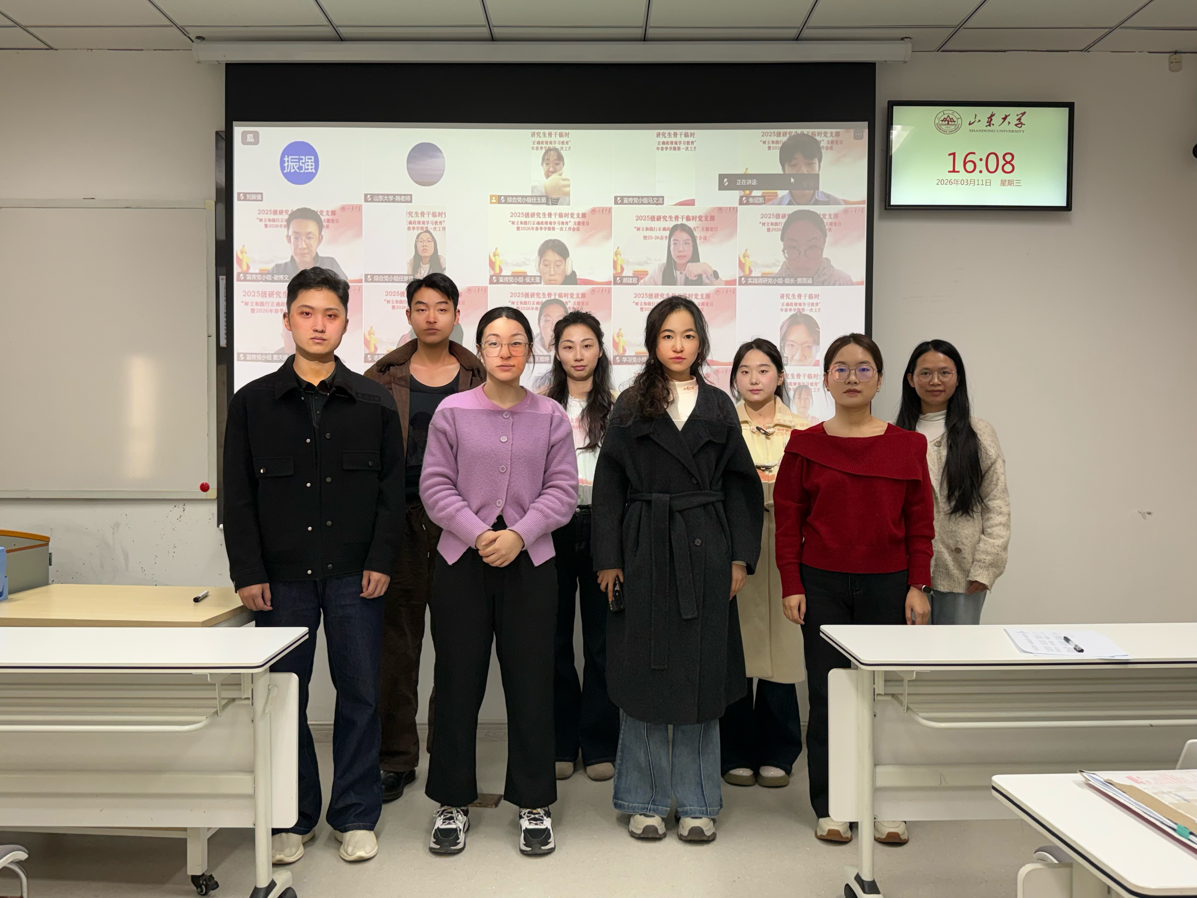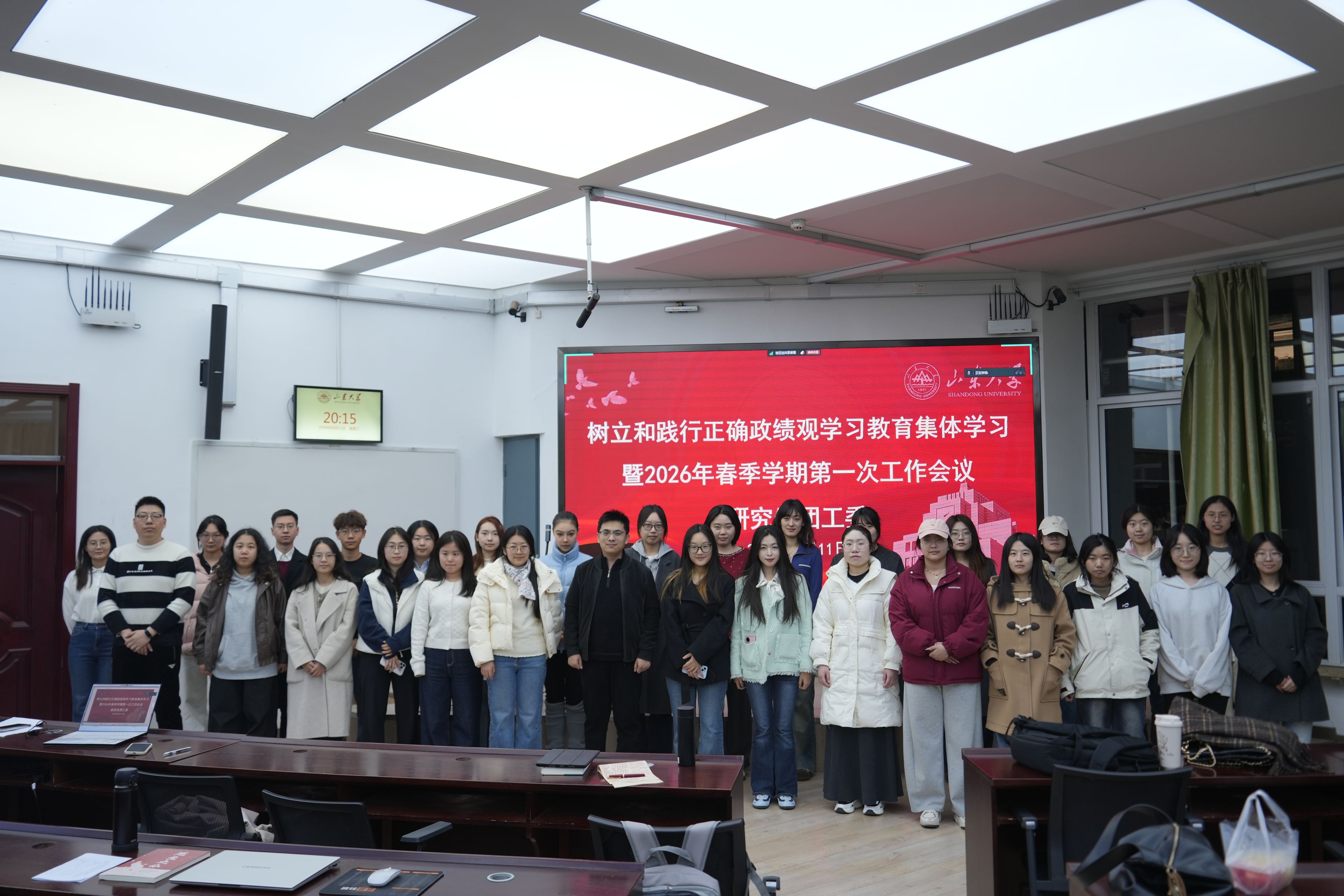 近日,山东大学研究生团工委、研究生骨干临时党支部召开树立和践行正确政绩观学习教育会议。会议深入领会贯彻习近平总书记关于树立和践行正确政绩观学习教育的重要讲话和重要指示精神,集体学习中共中央办公厅《关于在全党开展树立和践行正确政绩观学习教育的通知》,并研究部署2026年新学期重点工作任务,全面启动树立和践行正确政绩观学习教育工作。研究生团工委、研究生骨干临时党支部全体骨干成员参加会议。