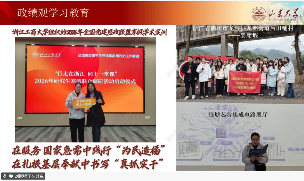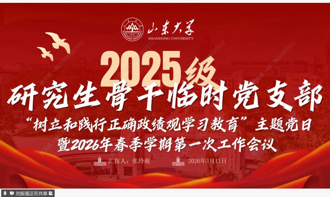 为深入贯彻落实全党树立和践行正确政绩观学习教育工作要求,同时总结复盘工作、明确新学期发展方向,3月11日,2025级研究生骨干临时党支部召开“树立和践行正确政绩观学习教育”主题党日暨2026年春季学期第一次工作会议。党支部书记张玲雨主持会议,党委研究生工作部团工委书记、党支部指导老师韩笑晨出席会议,一校三地73名支部成员参会。