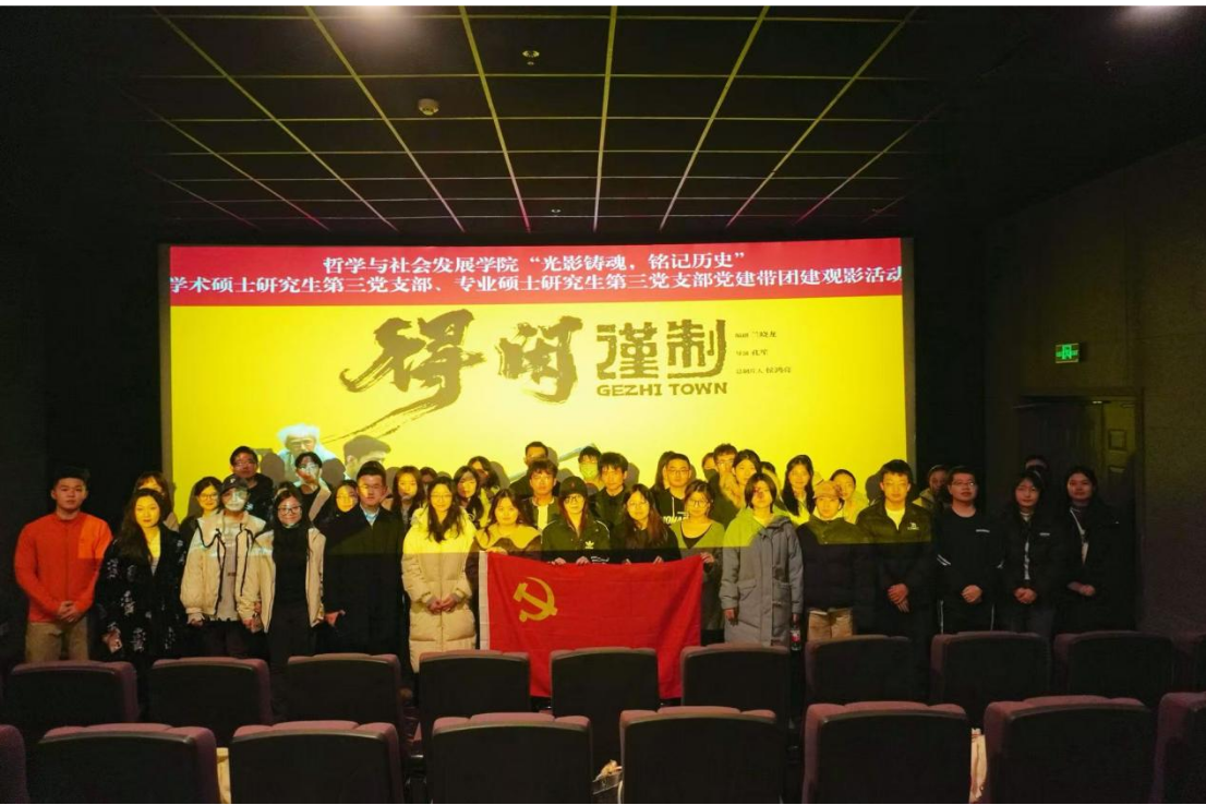 为深化爱国主义教育,创新基层党建活动形式,2025年12月15日晚上,山东大学哲学与社会发展学院学术型硕士研究生第三党支部与专业型硕士研究生第三党支部在新世纪电影城联合开展“光影铸魂、铭记历史”党建带团建主题观影活动。学院辅导员吕汶鑫、李念参与本次活动,师生党员、入党积极分子及共青团员50人共同观看了历史题材影片《得闲谨制》。