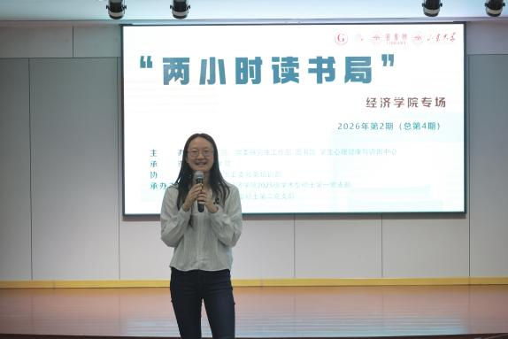 本次“两小时读书局”经济学院专场将经典阅读、心理赋能与思政引领深度融合,既为学院研究生搭建了情绪释放、思想交流、互助成长的优质平台,也为深化研究生心理健康教育、创新思政育人模式提供了生动实践。下一步,学院将持续深耕特色育人品牌建设,将人文关怀与心理支持贯穿研究生培养全过程,引导广大研究生以积极健康的心态、坚韧不拔的品格投身科研学习与时代发展,为人才培养工作高质量发展注入源源不断的青春活力。