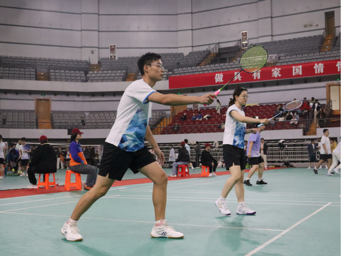 在小组赛中,文学院先后迎战土建与水利学院、新闻传播学院、马克思主义学院。首战土建与水利学院时,李开军与钟馨悦组成的混双组合率先登场,沉着应对对手的猛烈攻势,凭借默契配合与精准扣杀拿下首局胜利;王萌与张浩搭档的男双组合虽在胶着的较量中积极应战,但最终以1:2遗憾落后;第三局中混双组合纪霖凯、蒙滟瑾积极调整战术策略,但终不敌劲敌。面对新闻传播学院,文学院队伍重整旗鼓、奋力拼搏。李开军与钟馨悦的混双组合攻防转换流畅、掌控比赛节奏,以2:0的绝对优势取得胜利;王萌与张浩的男双组合则默契升级,凭借凌厉的进攻与稳固的防守,同样以2:0的比分优势为队伍拿下关键一胜。第三轮对阵马克思主义学院,李开军与王萌组成的男双组合挺身而出,两人配合默契、攻防兼备,以2:0的比分战胜对手,为队伍稳住局势。两组混双组合在赛况陷入胶着时积极寻求突破点,但最终遗憾告负。