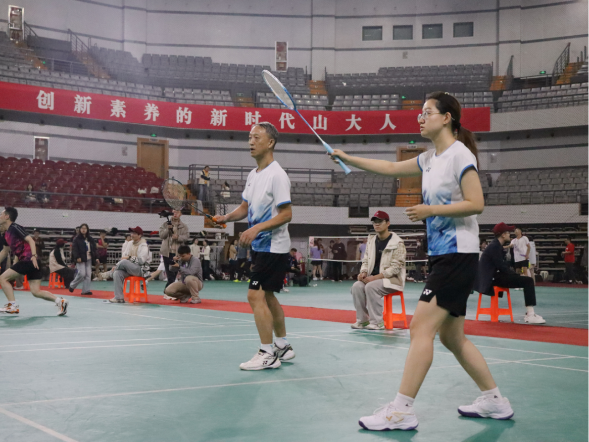 为增强师生体魄、凝聚团队力量,丰富校园文体生活,推进校园精神文明建设,11月8日,山东大学第十四届“导学思政”研究生师生羽毛球赛在中心校区体育馆举办。本次赛事由研究生院、党委研究生工作部与体育学院联合主办,济南赛区共31支队伍同台竞技。文学院党委副书记王萌,教授凌晨光、李开军,学生张浩、纪霖凯、潘育婷、钟馨悦、蒙滟瑾组队参赛。