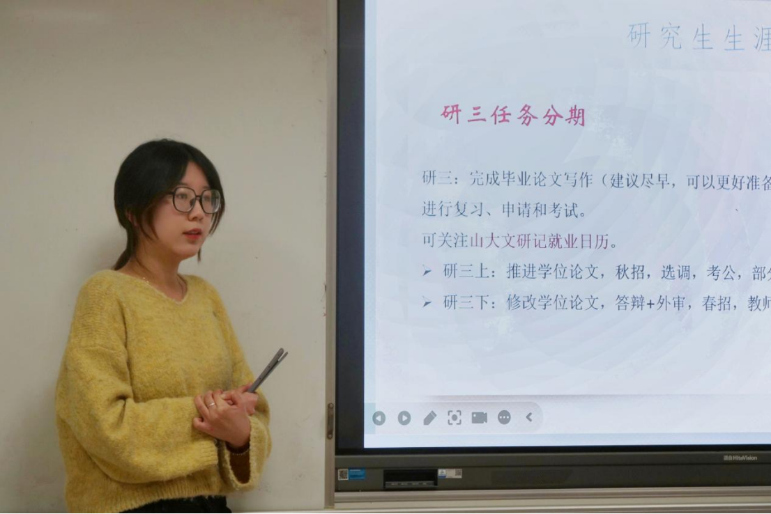 徐怡博坚持问题导向,从自身学业成长过程中遇到的问题出发,围绕选题与文献管理、课程修读与阅读作品、学术规划与心态调整三个方面,详尽分享了比较文学与世界文学专业的学习经验,并建议同学们合理协调课程学习与科研任务,及时进行自我调整,以良好心态应对求学过程中遇到的困难。