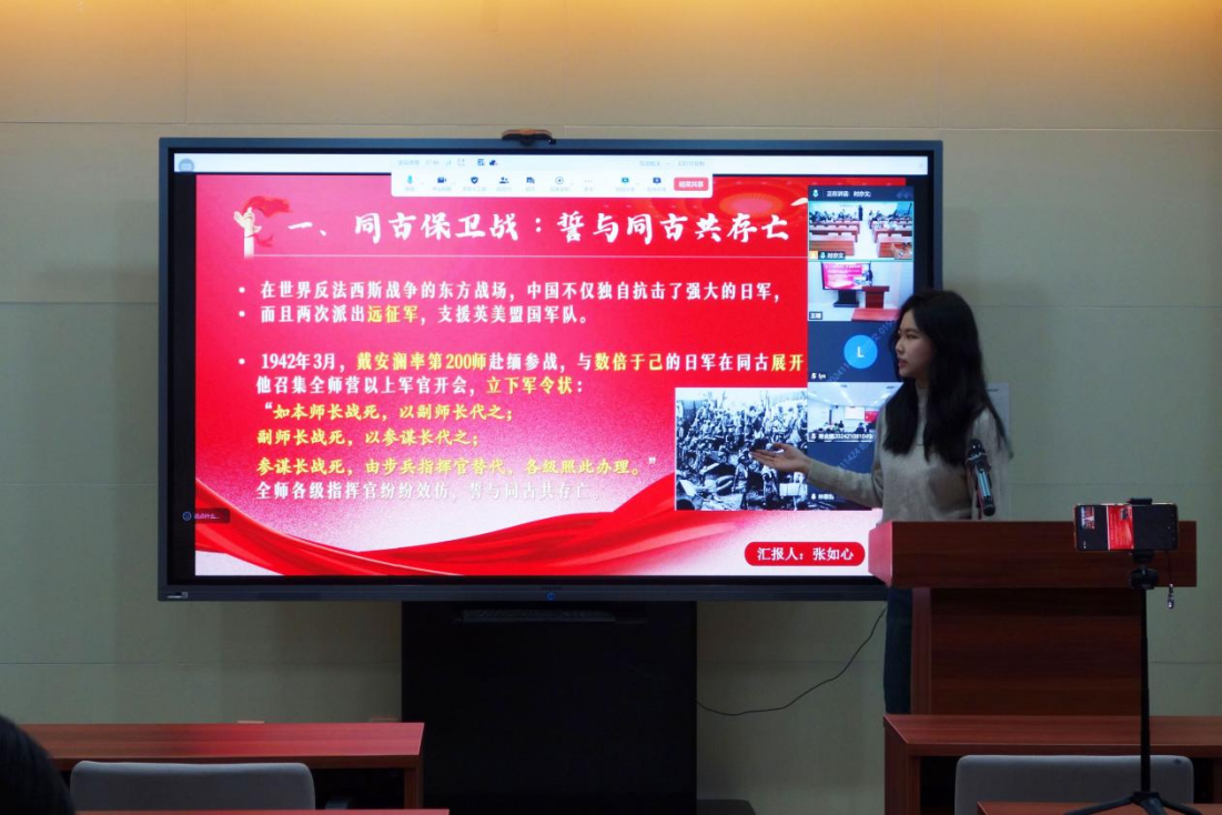 为纪念中国人民抗日战争暨世界反法西斯战争胜利80周年,深入推动党史学习教育常态化开展,12月16日晚,山东大学文学院硕士研究生第四党支部与北京师范大学人工智能学院硕士第三研究生党支部以“翰墨忆峥嵘,丹心铸丰碑”为主题联合举办红色经典读书会。本次读书会在山东大学知新楼A606、北京师范大学昌平校园二号教学楼312开展,采取线上联线与线下学习结合的方式联学共建。读书会由文学院硕士研究生第四党支部书记时亦文、北京师范大学人工智能学院硕士第三研究生党支部书记蒋金鹏共同主持,两支部60余人到场参会。
