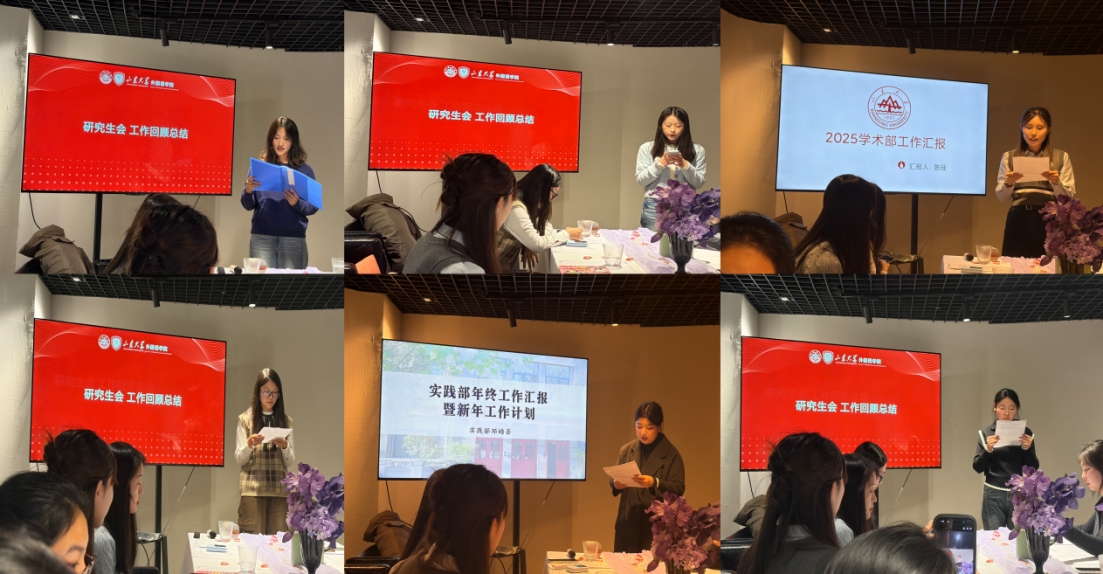 研究生会及各职能部门在汇报中展现了服务师生的宗旨。团委委员丁清雯对研会整体工作及宣传部成果进行了总结。文体部部长孔晶、秘书处部长李鑫盈、学术部副部长陈佳、语翼编辑部副部长温佳雯及实践部副部长张瑞鑫分别就部门亮点工作进行了交流。从繁荣校园文化到赋能学术创新,从细致的后勤保障到多维度的社会实践,各部门表示将进一步优化内部体系,提升组织联动效率。