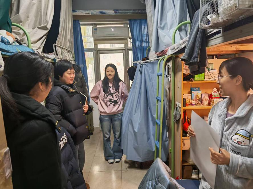 走访期间,马蕾一行与同学们进行了亲切交流,细致询问大家近期的学习、生活情况及宿舍安全状况,传达防火、防盗、防骗、用电安全及应急处理等关键信息。老师们着重强调了期末及节假日期间宿舍安全的重要性,叮嘱同学们务必严格遵守学校宿舍管理规定,增强安全防范意识,养成人走电断、定期排查隐患的良好习惯,共同维护安全稳定的住宿环境。