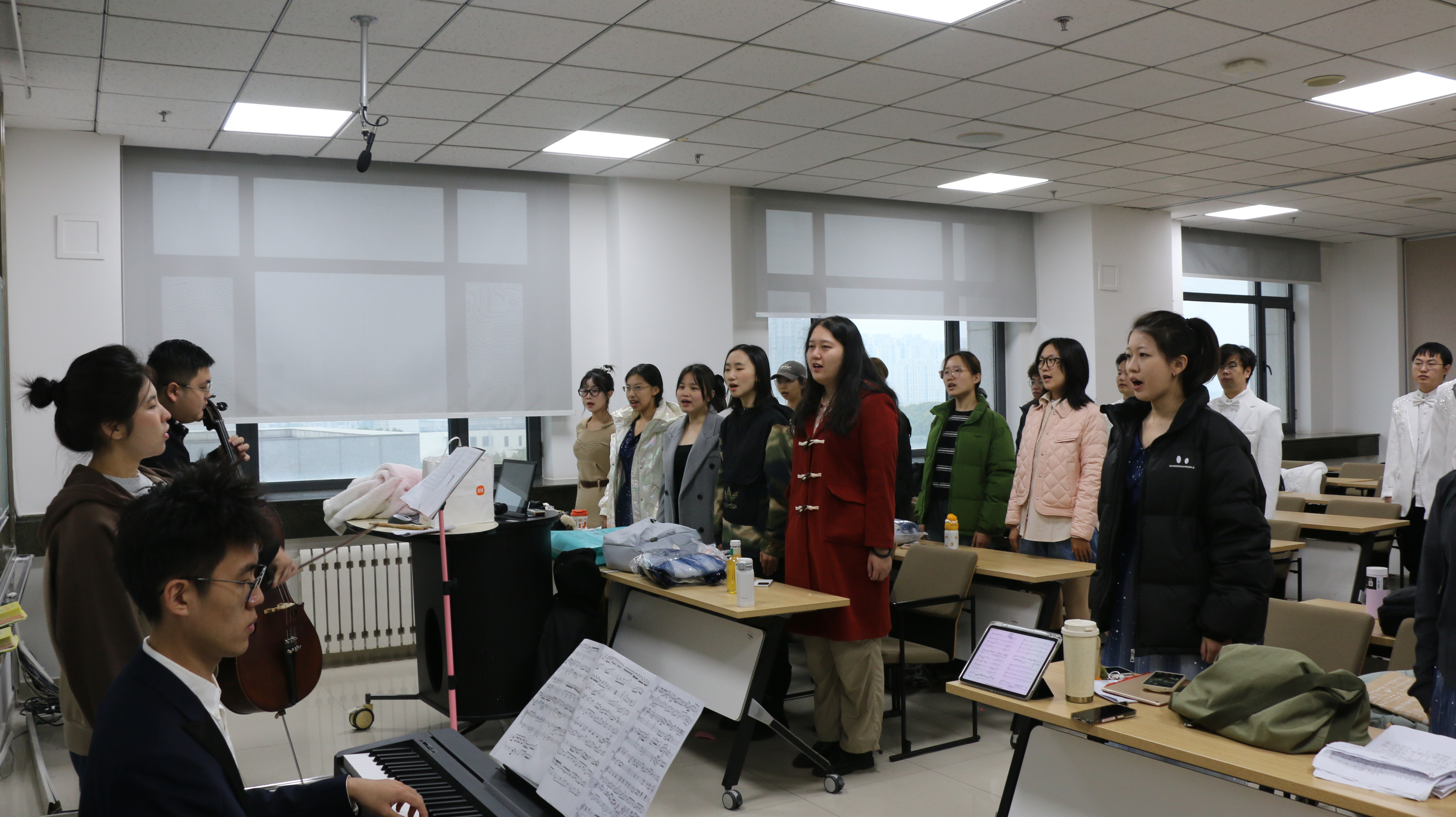 为了呈现最佳舞台效果,比赛前的数周里,师生们克服重重困难,充分利用课余时间投入排练。从分声部练习到整体合排,从歌词理解到情感表达,大家在指导老师的悉心指导下不断打磨细节、提升表现力,力求在舞台上呈现最动人的风采。学院将此次研究生师生合唱比赛作为一项重点文化活动,倾力筹备、周密部署。这支由36名硕士研究生和9名老师组成的45人队伍,充分发挥自身优势,以饱满的热情与专注的态度,充分彰显了数学学院师生团结进取、追求卓越的团队风貌与精神品格。