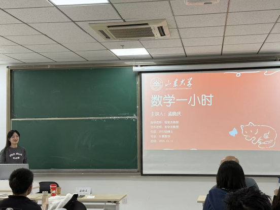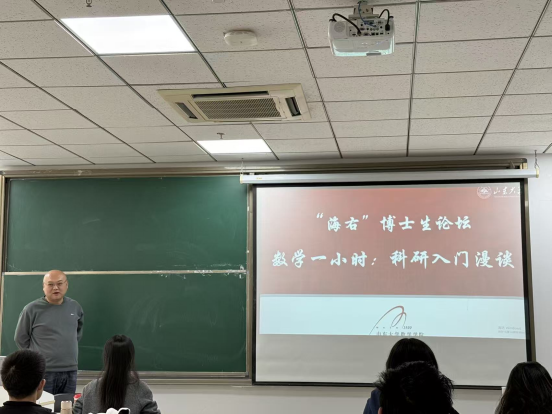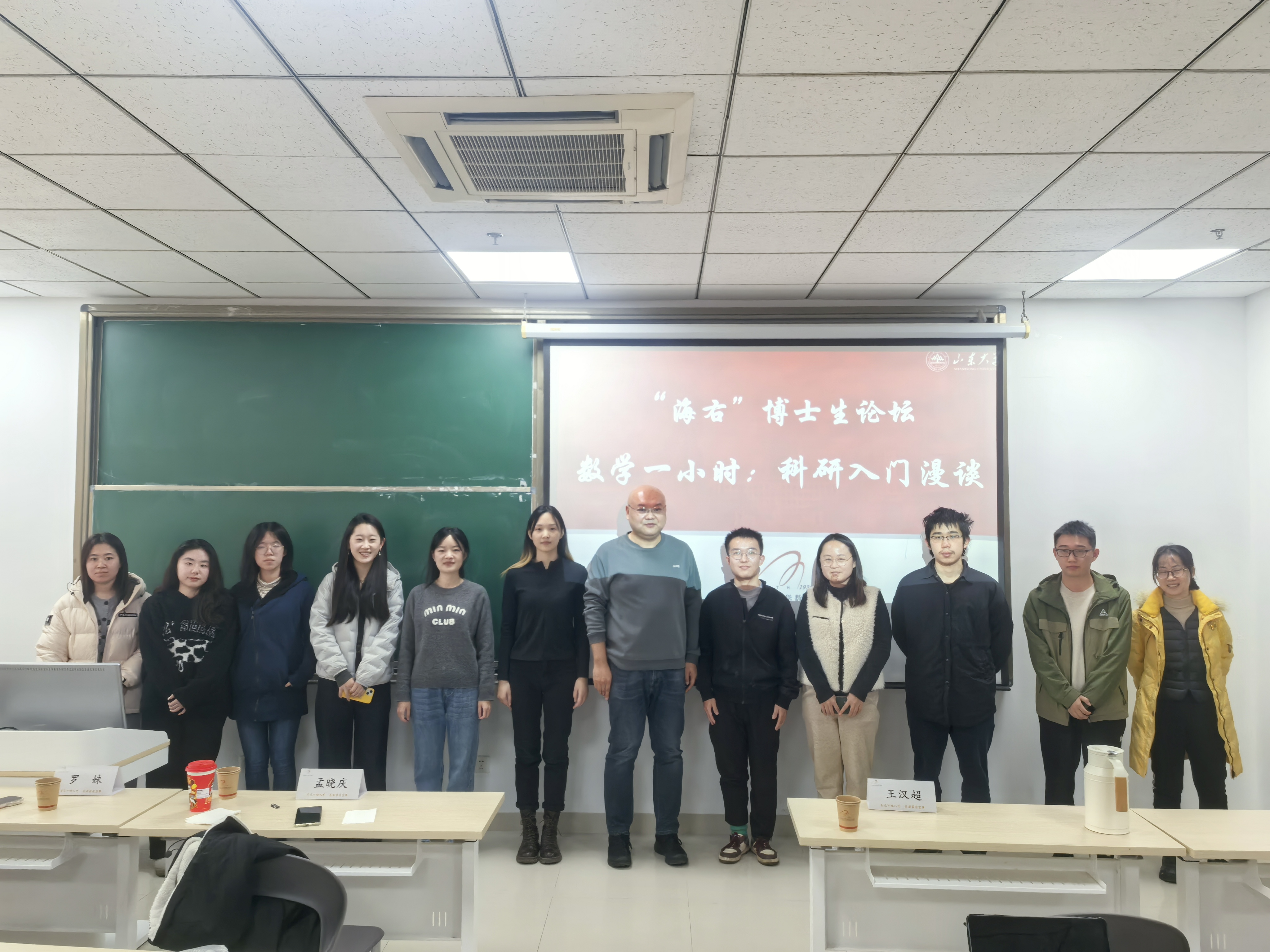 2025年12月11日下午,由山东大学研究生院、党委研究生工作部主办的研究生特色学术活动品牌,数学学院承办的第24期(总866期)“海右”博士生学术论坛于中心校区知新楼B1032教室如期举办,此次论坛邀请了孟晓庆和罗姝两位博士生作报告,金融研究院博士生导师王汉超教授作为点评嘉宾出席了本次论坛。