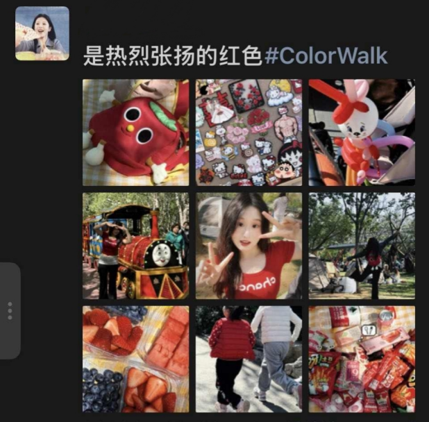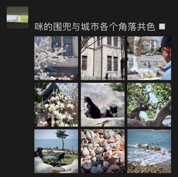 活动自发布以来,同学们积极响应,纷纷走出教室、实验室与图书馆,用镜头捕捉春日色彩,并通过朋友圈分享了大量充满创意与温情的九宫格截图。这些作品涵盖粉、白、绿、黄、蓝、红等多种色调,每一种颜色都成为一段独特的春日叙事。