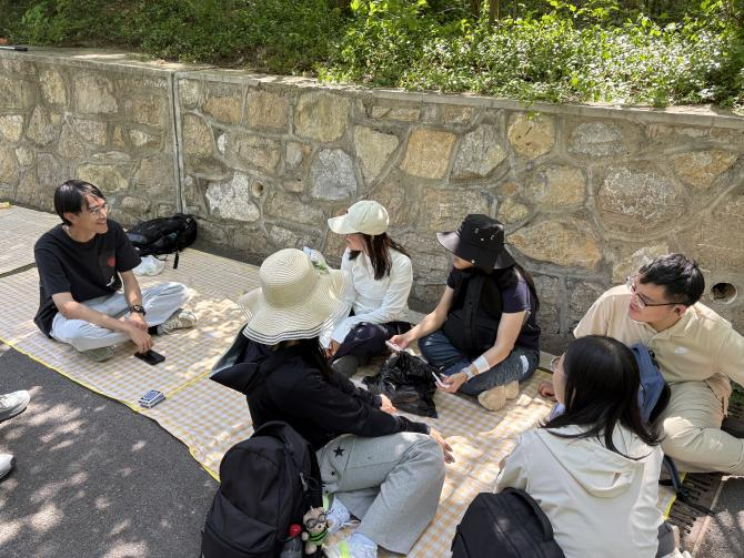 正午时分,山间野餐与图书漂流温馨开启。同学们以小组为单位围坐野餐垫上,分享自带的美食、水果与零食,在烟火气中畅谈科研日常、生活趣事,彼此关照、其乐融融。