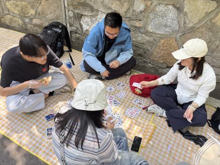 野餐过后,迎来轻松自在的自由活动时光。同学们根据兴趣自由参与,狼人杀逻辑交锋、掼蛋趣味对弈、围坐谈心、听歌休闲等同步开展,现场氛围轻松热烈,欢声笑语回荡山间。大家在游戏中增进默契,在闲谈中拉近距离,充分感受集体踏春、野餐游玩的快乐与惬意。