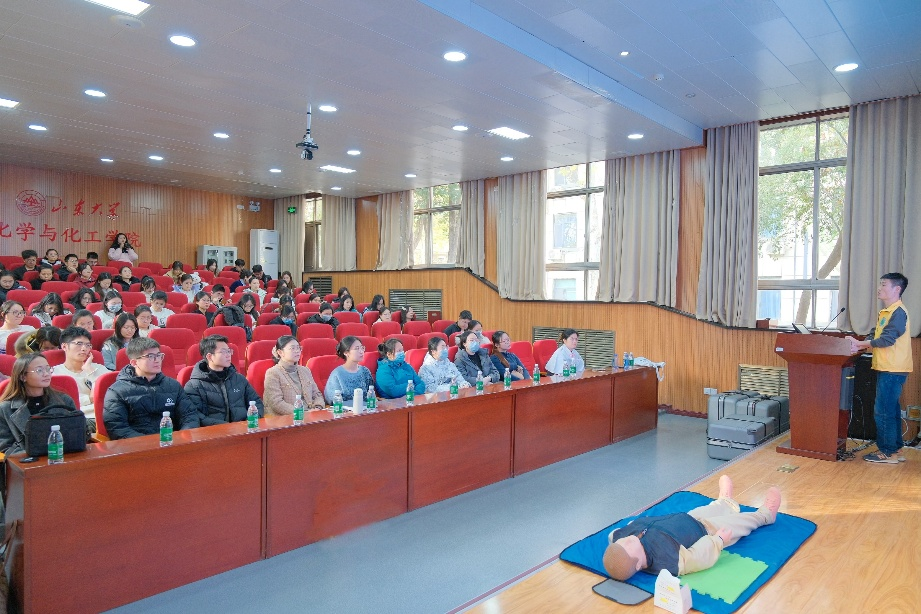 为筑牢校园安全防线,提升非医学专业学生的应急救护能力,2025年11月28日,由山东大学化学与化工学院主办的“校园安全守护计划”主题活动在化学老楼学术报告厅举办。本次讲座特邀山东大学第二临床学院师生团队介绍心肺复苏(CPR)与海姆立克急救法等核心救助技能,学院教师及百余名研究生参与活动。