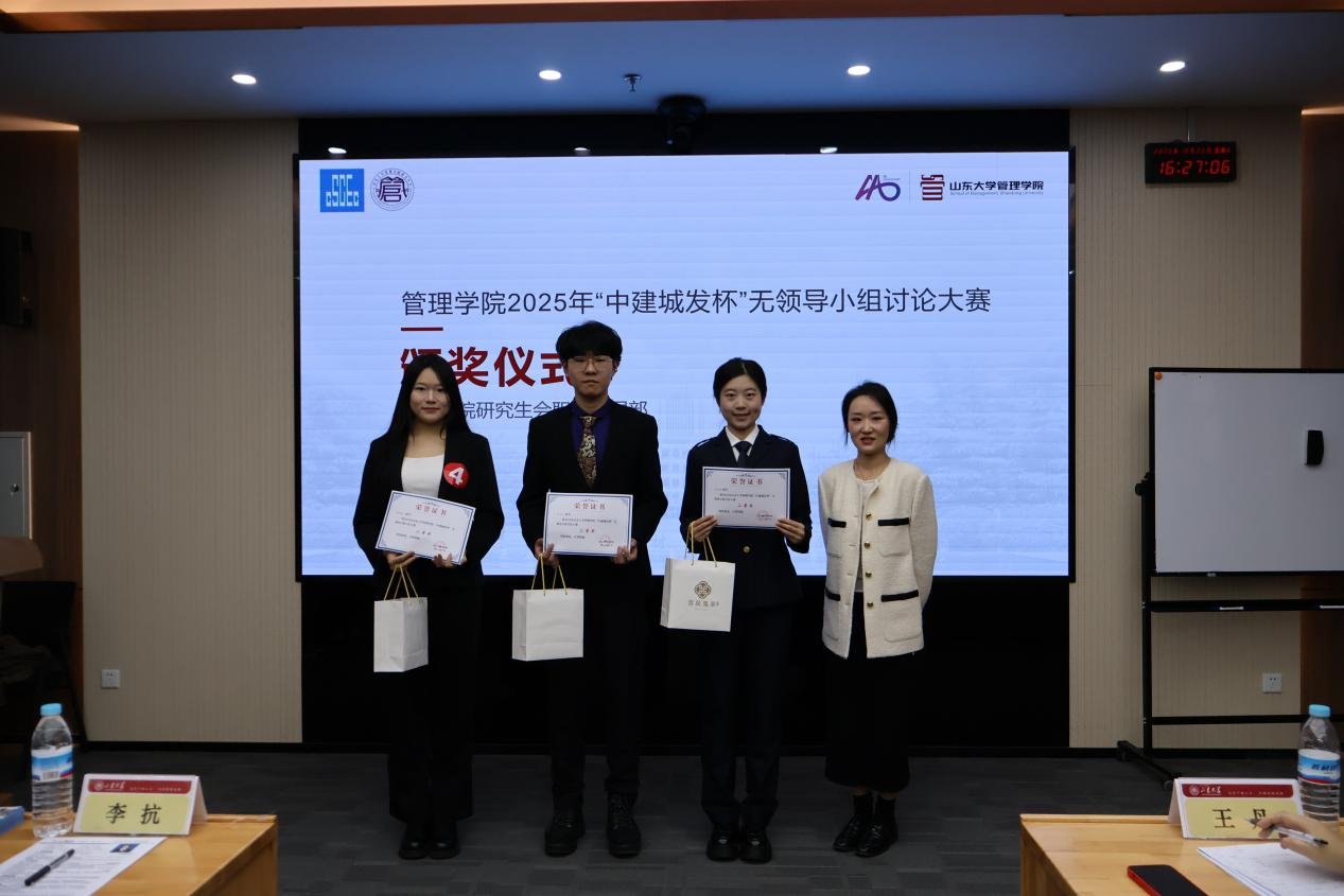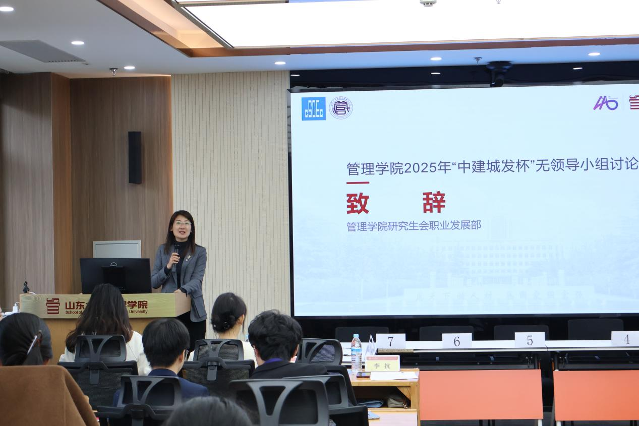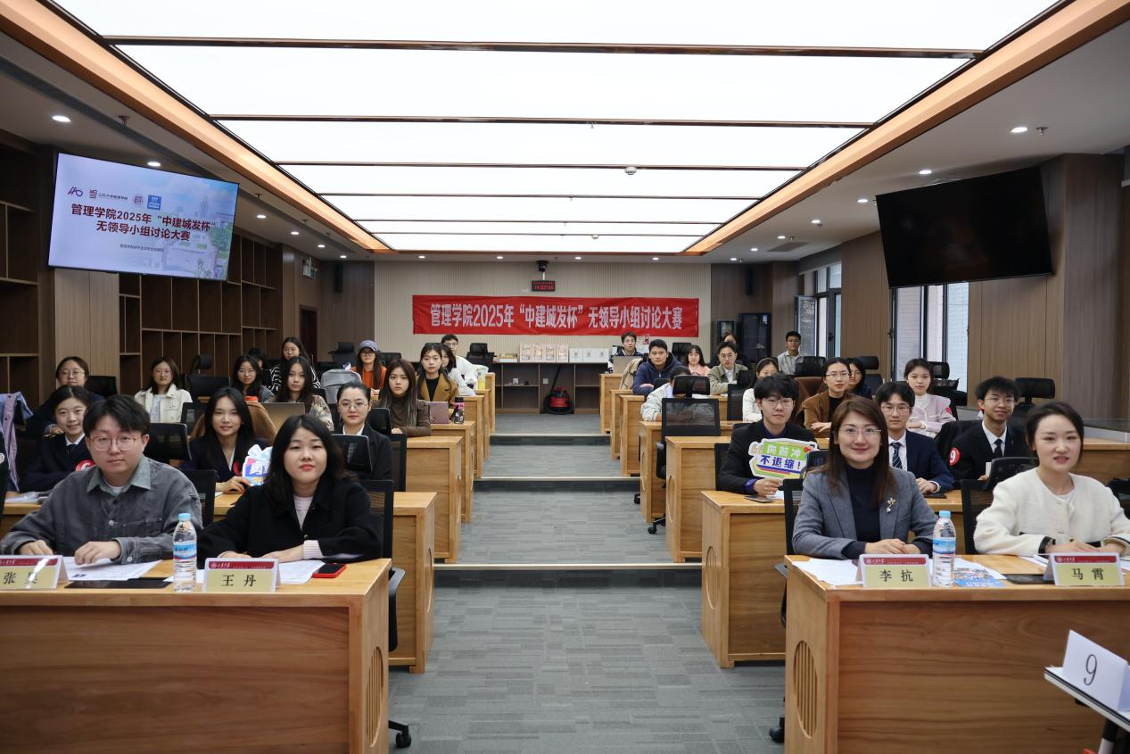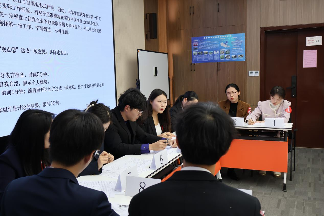为深入贯彻落实就业优先战略,切实提升学生求职竞争力与职业素养,2025年10月,管理学院在中心校区举办2025年“中建城发杯”无领导小组讨论大赛,特邀中建城发地产开发公司综合管理部副经理王丹、高顿教育山东区财经项目总负责人张莹雪、龙湖集团山东地区人力资源经理张昊和新城吾悦山东区域人力副总监马霄担任评委并提供专业指导,助力学生搭建求职实践与能力展示的优质平台。