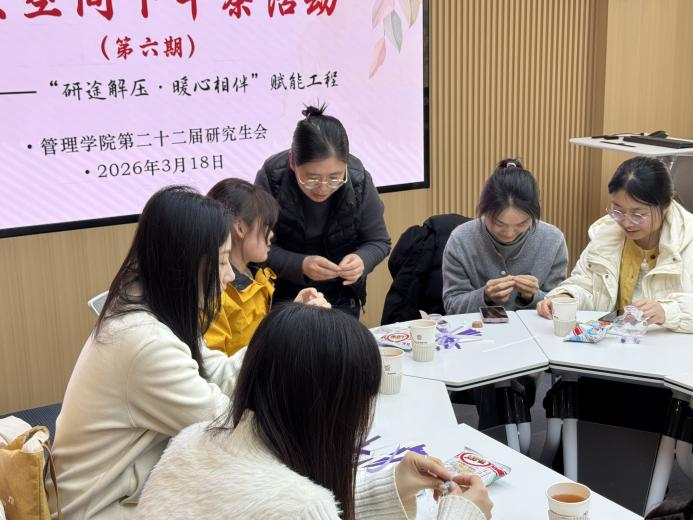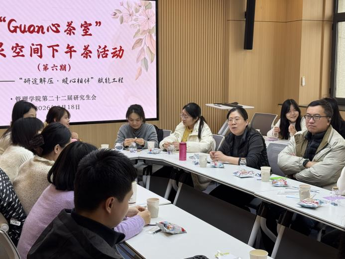 作为管理学院心理健康教育特色品牌,“Guan心茶室”始终坚持以学生需求为导向,以有温度、有情怀、有内涵的形式拉近心理距离,为研途学子提供暖心陪伴与专业支持。未来,管理学院将持续深耕心理健康教育工作,不断创新活动形式,丰富品牌内涵,提升服务实效,用心护航研途学子成长成才。