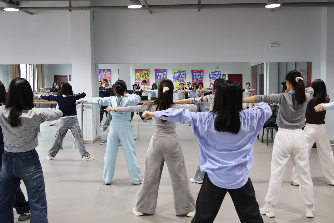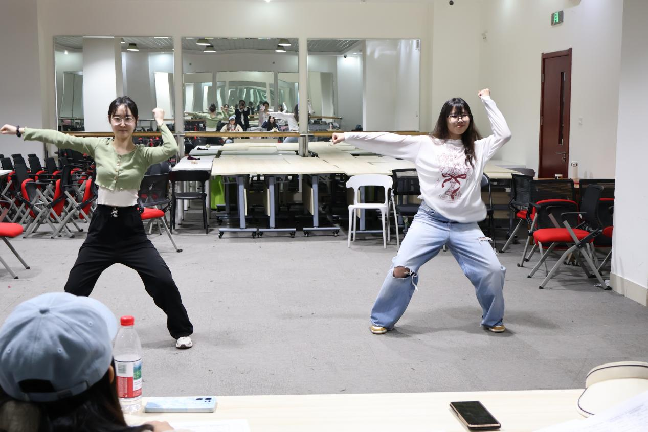 集体教学环节,文体部成员围绕经典啦啦操片段进行标准化动作示范教学,选手们认真学习,迅速掌握基础动作要领。
