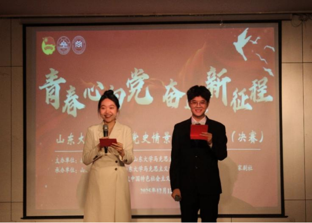 2025年12月12日晚,第三届党史情景剧演绎大赛决赛在山东大学中心校区大学生活动中心举办。聚光灯下,一幕幕经典场景在舞台上精彩呈现。同学们用真诚的表演和饱满的情绪诠释初心,把我们带回那段峥嵘岁月。台下的掌声一次次响起,这不仅是对精湛演技的肯定,更是青春向崇高理想的真挚致敬。
