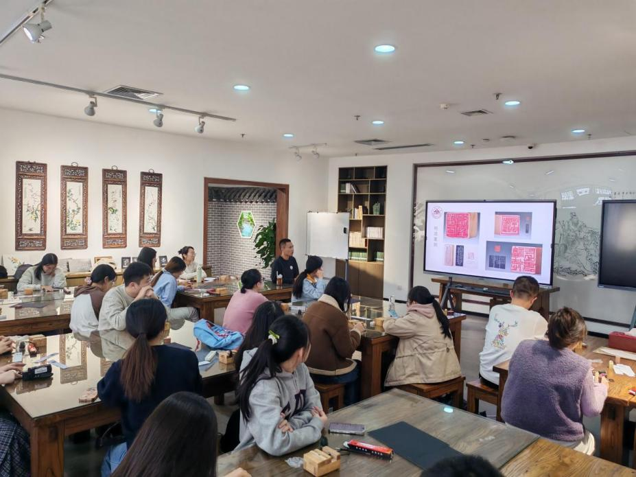11月7日,国际教育学院研究生会联合山东大学研究生会于中华传统文化研究与体验基地诸子学堂举办“立冬·金石之美——篆刻主题文化沙龙”活动。活动特邀山东大学文艺学博士研究生、中国书法家协会会员闫井贺担任主讲嘉宾,来自土建与水利学院、公共卫生学院等11个学院的25名研究生参与活动。
