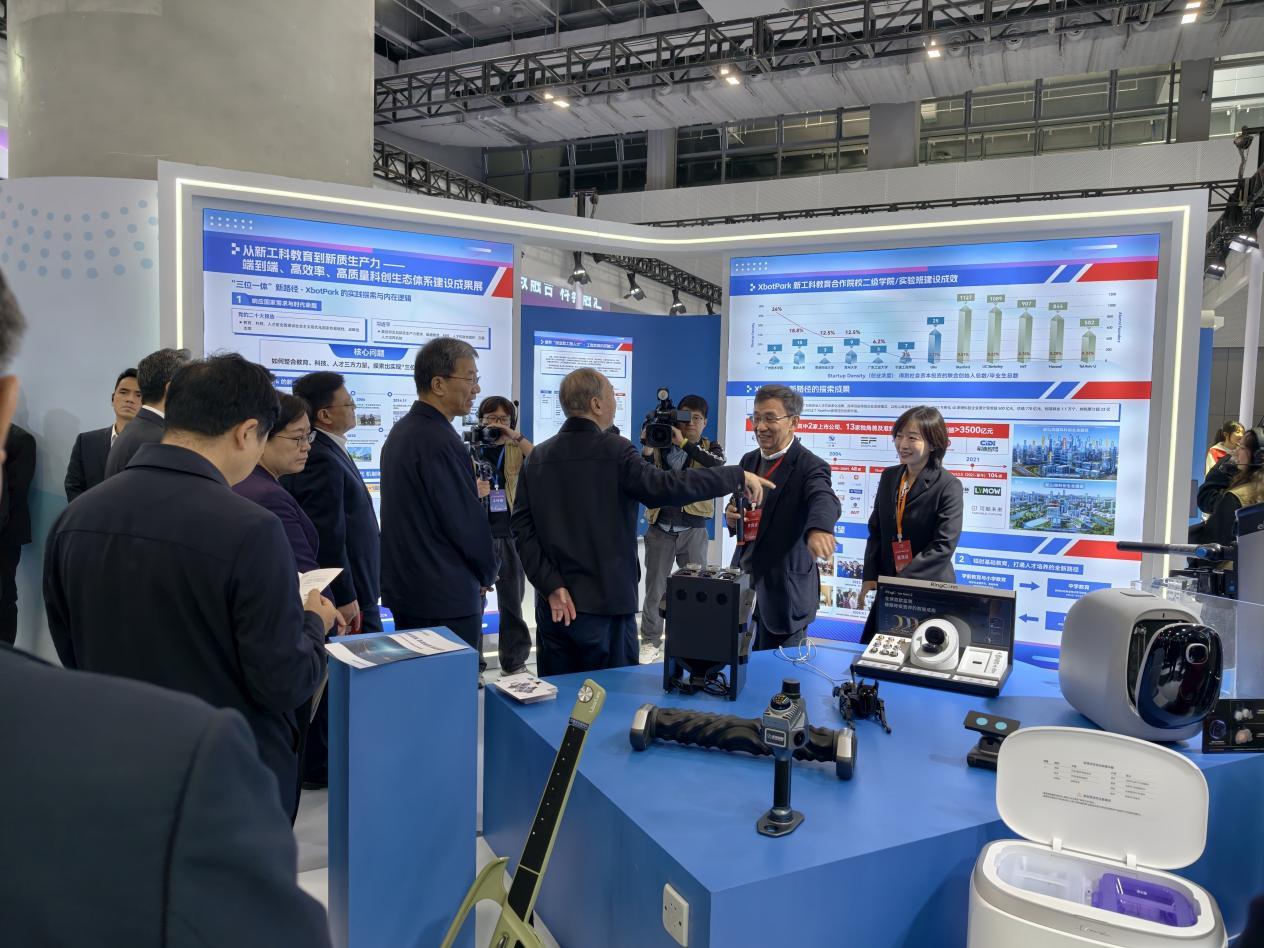 广东省委书记黄坤明,教育部党组书记、部长怀进鹏出席全体会议并为高校区域技术转移转化中心(粤港澳大湾区)揭牌。广东省委副书记、省长孟凡利主持全体会议。教育部党组成员、副部长徐青森,广东省委常委、副省长张国智等出席全体会议。国家发展改革委、科技部、工业和信息化部、财政部、国务院国资委、国家知识产权局有关部门负责人,香港特别行政区政府教育局、澳门特别行政区政府教育及青年发展局负责人,有关高校、企业代表参加全体会议。共有600多所高校携3300余项科技成果参加本届科交会。