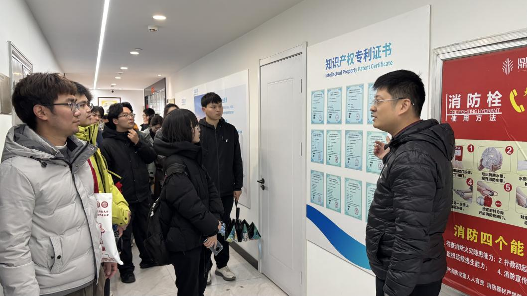 座谈结束后,学院师生前往山东鸿鹄数商电子科技有限公司参观学习。企业负责人赵温兴结合自身创业及成长历程,讲述企业发展故事,介绍企业融入基层治理、回馈社会建设的实践举措,让学生党员真切感受企业的社会担当,深化对校地企联动意义的理解。