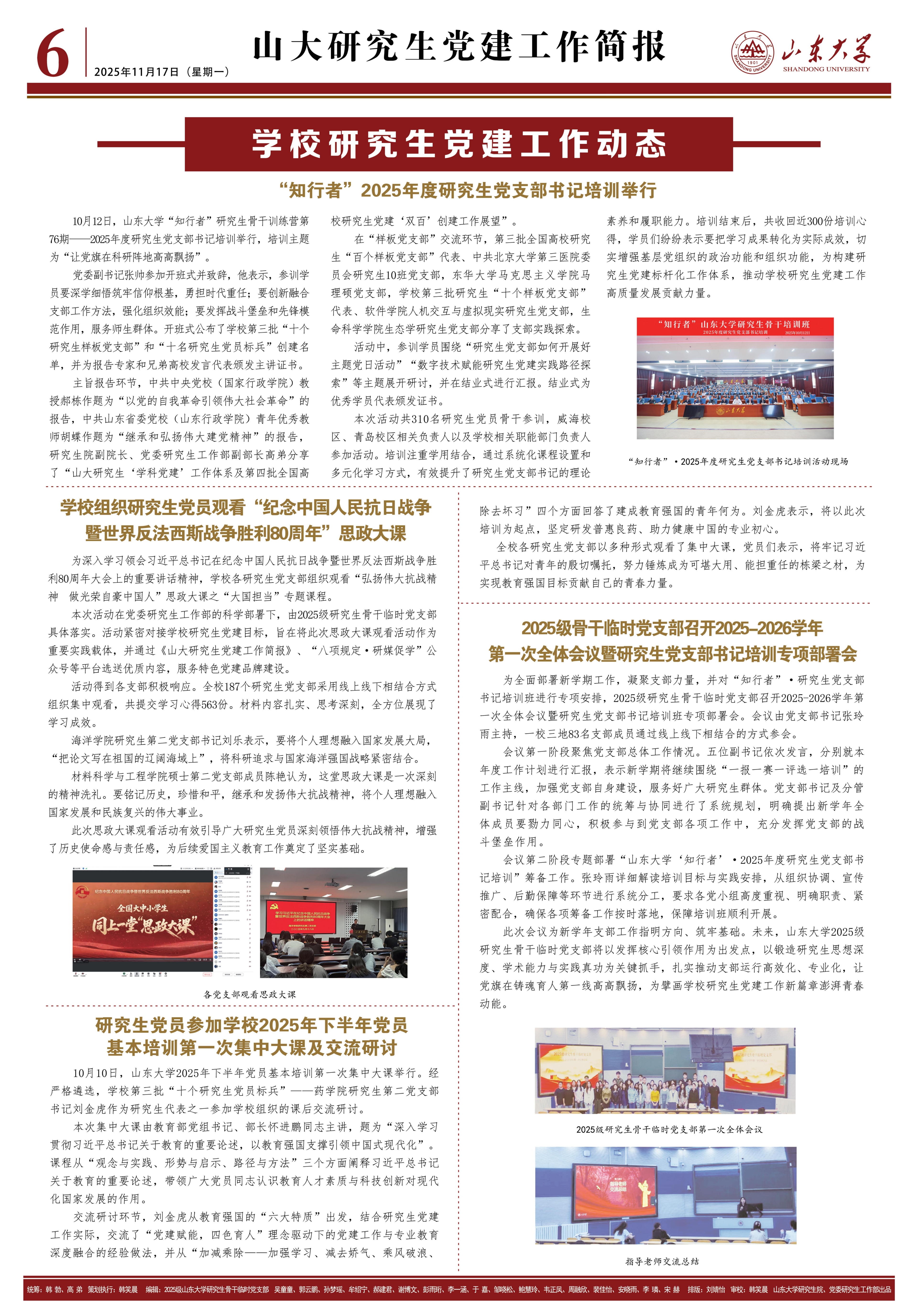 《山大研究生党建工作简报》 202509-202510 总第十期