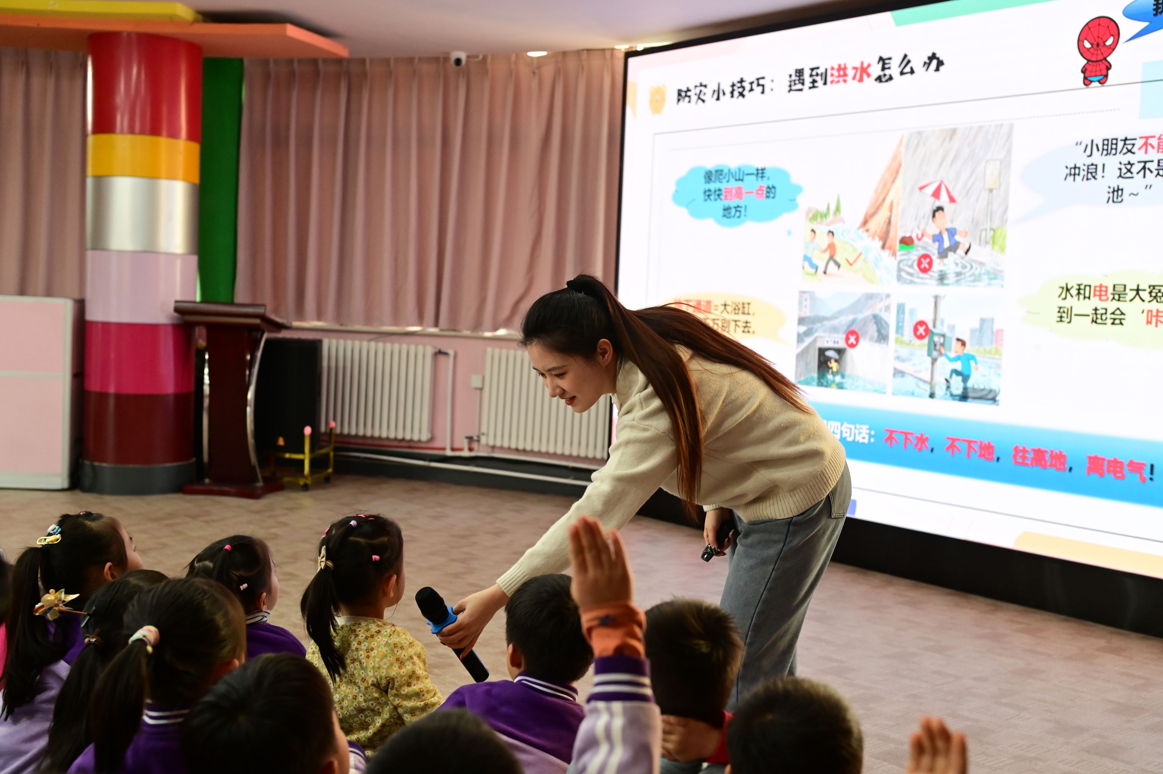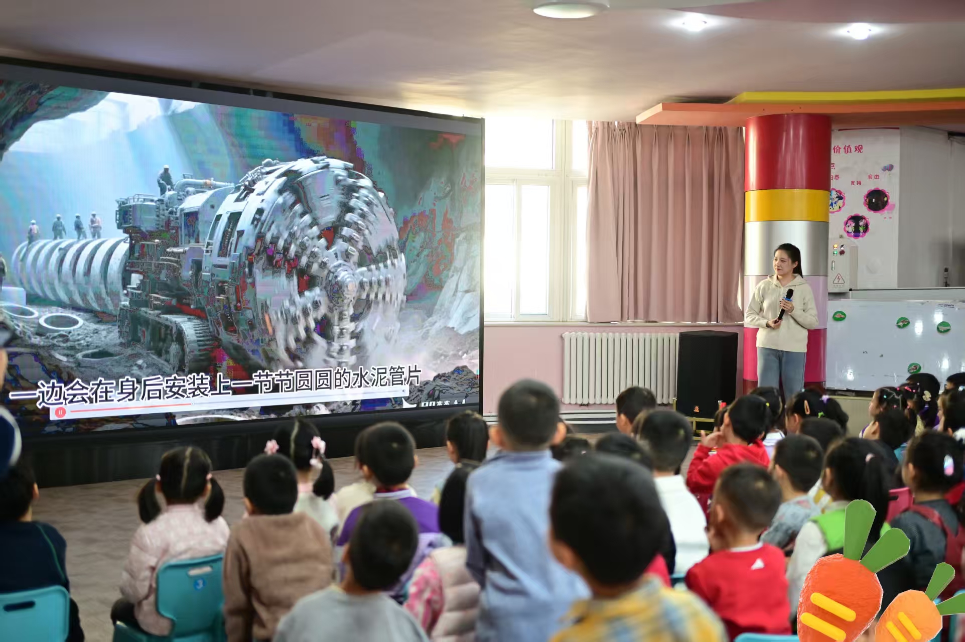 活动中,知行团成员以“小工程师探险”为主线,用通俗易懂的语言和丰富的图片、视频,引导小朋友认识身边的工程世界。通过讲解济南的桥梁、地铁等典型基础设施,帮助孩子们了解城市交通和工程建设的初步认知。围绕“山谷”和“山脊”两类地形,通过形象比喻和小游戏为孩子们讲解遇到洪水与滑坡等自然灾害时的基本安全常识,在寓教于乐中提高幼儿的安全意识和自我保护意识。在“畅想未来”环节,小朋友们踊跃举手发言,现场气氛热烈,不仅展现出对科学知识的浓厚兴趣,也流露出对未来职业与创新创造的向往。